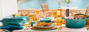 Este novo azul vibrante e energético traz exuberância para a sua mesa. Inspirado pela beleza luminosa da Riviera, cria uma atmosfera leve e alegre. As águas serenas e cintilantes e os céus claros e ensolarados ganham forma em um tom que transmite frescor e vitalidade. Uma experiência que transforma o ambiente em um refúgio leve repleto do espírito descontraído da vida à beira-mar.
