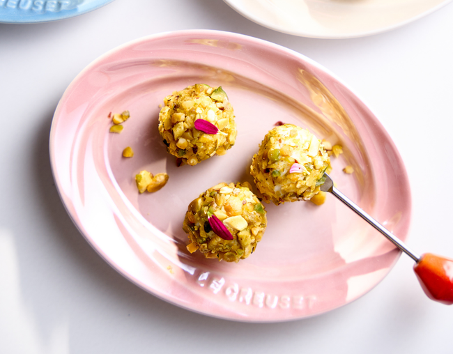 Quer uma entrada prática, elegante e irresistível? Essas trufas de queijo de cabra com pistache são a escolha perfeita. Com apenas dois ingredientes, elas impressionam pelo sabor e pela apresentação ideais para acompanhar um bom vinho e servir com charme no seu ramekin ou prato de aperitivo Le Creuset. Uma receita rápida, mas com efeito memorável.