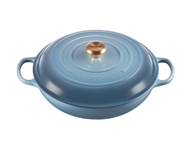 Um azul descontraído, com subtons cinzentos sutis, capaz de harmonizar com todas as demais tonalidades da coleção Le Creuset ou de adicionar um toque vibrante a uma paleta neutra. Este tom confere um charme à sua cozinha. Convidamos você a elevar o seu espaço culinário com essa escolha refinada, garantindo uma atmosfera de elegância que perdura.