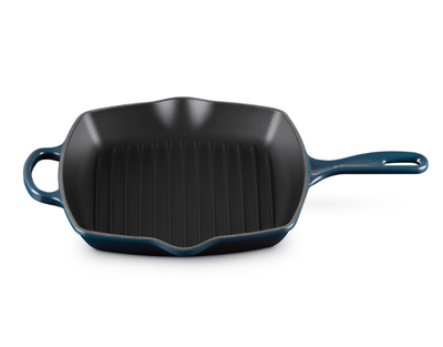- Aqueça sua Grelha Quadrada Signature Le Creuset em fogo médio e pincele levemente com azeite.