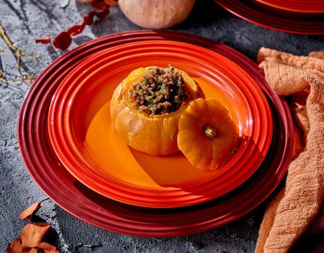 Recheie com a carne moída e sirva ainda quente, diretamente nas abóboras ou em suas Mini Cocottes Le Creuset.
