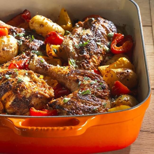 Com aromas exóticos e toque cítrico, o frango assado marroquino com cuscuz de laranja é uma receita vibrante e cheia de sabor. Um prato que combina especiarias marcantes e frescor, perfeito para preparar na sua Caçarola Le Creuset.