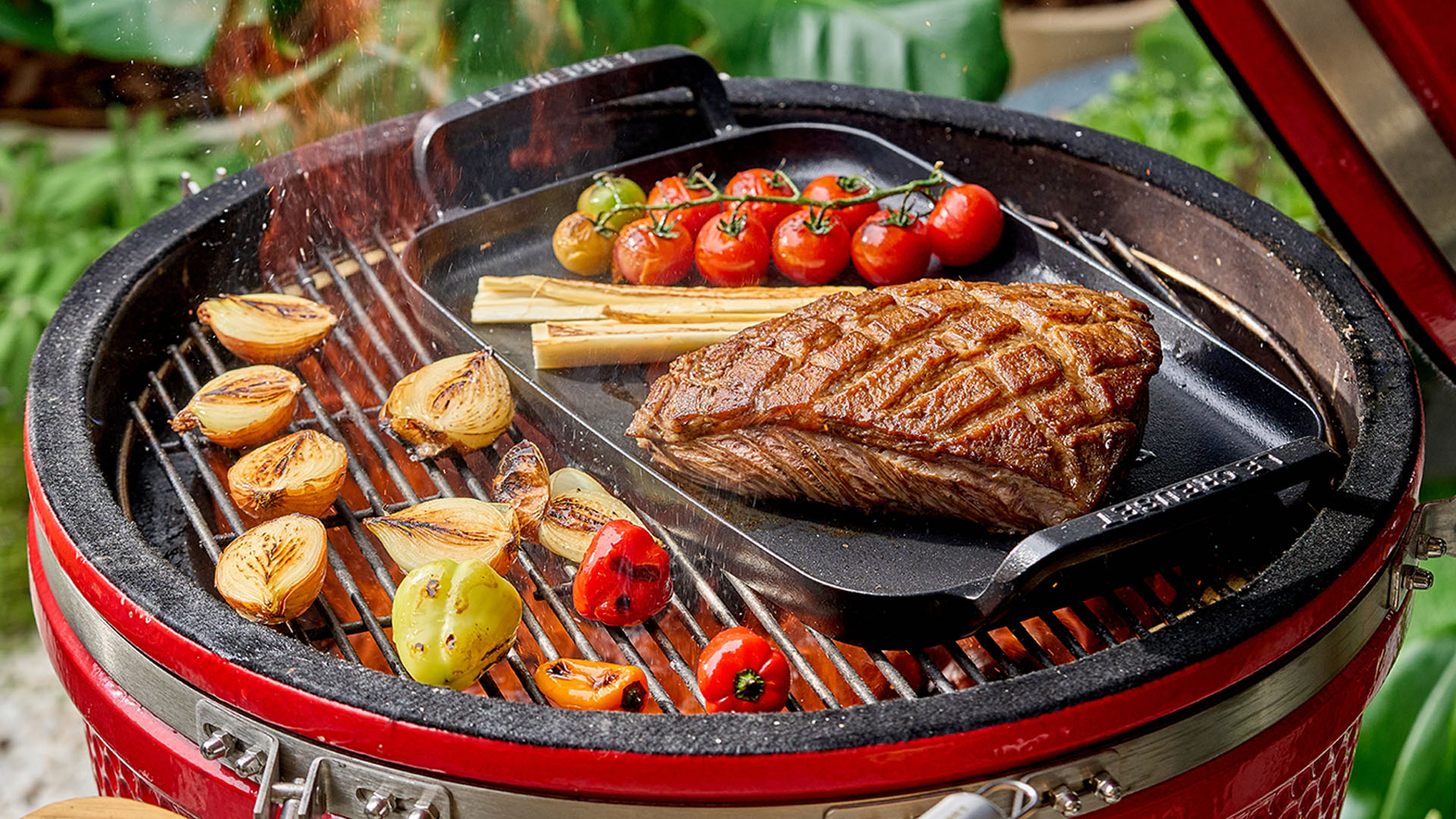 Vá além da cozinha com a Skillet Redonda com Alças Alpine, um item versátil e essencial para grelhar, selar, refogar e saltear ao ar livre. Produzida em ferro fundido esmaltado e especialmente projetada para o preparo sobre chama aberta, é totalmente revestida com esmalte preto fosco resistente e já vem pronta para o uso. Seu tamanho se ajusta perfeitamente à maioria das grelhas, oferecendo espaço suficiente para cozinhar acompanhamentos lado a lado. A ampla superfície e as laterais inclinadas facilitam o manuseio dos alimentos, enquanto as alças elevadas garantem firmeza e segurança. Durável e fácil de limpar, a Skillet Alpine é ideal para preparar carnes, vegetais, lanches e muito mais.